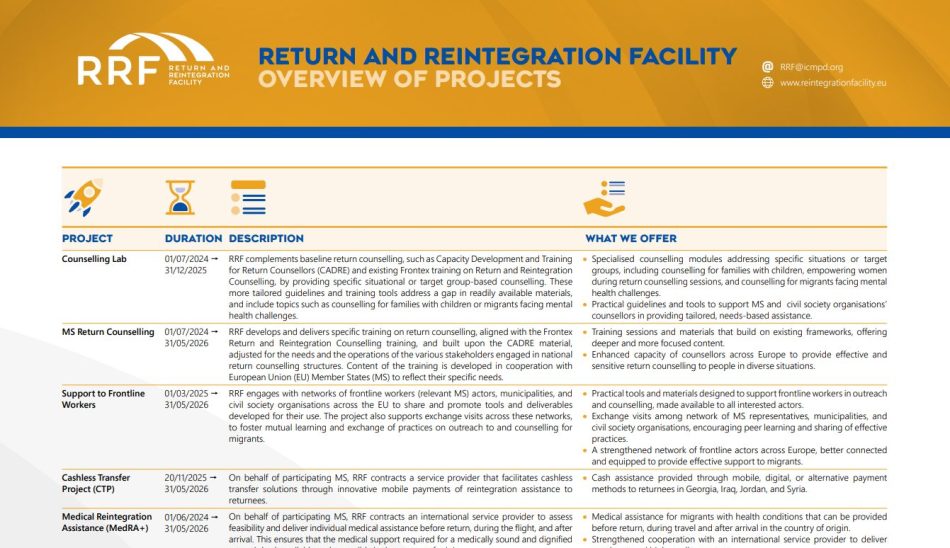 This infosheet summarises the list of RRF projects, completed and ongoing, and provides description of the projects. For further information about each of the projects, we invite you to explore the What We Do section and/or get in touch with the RRF team.